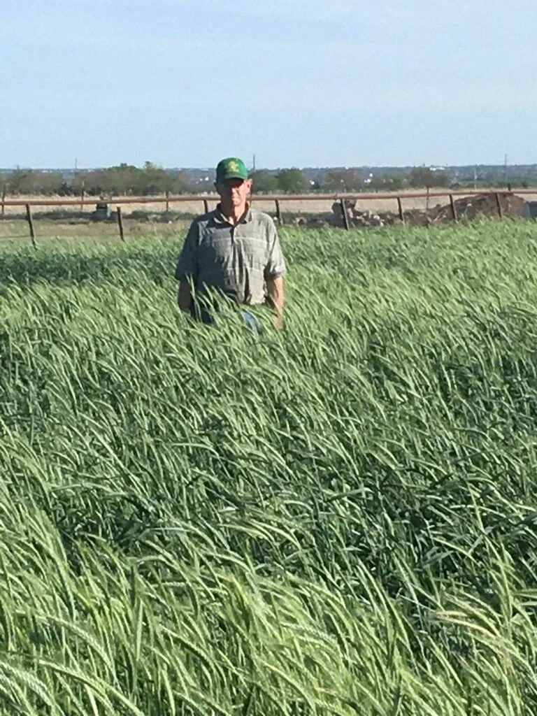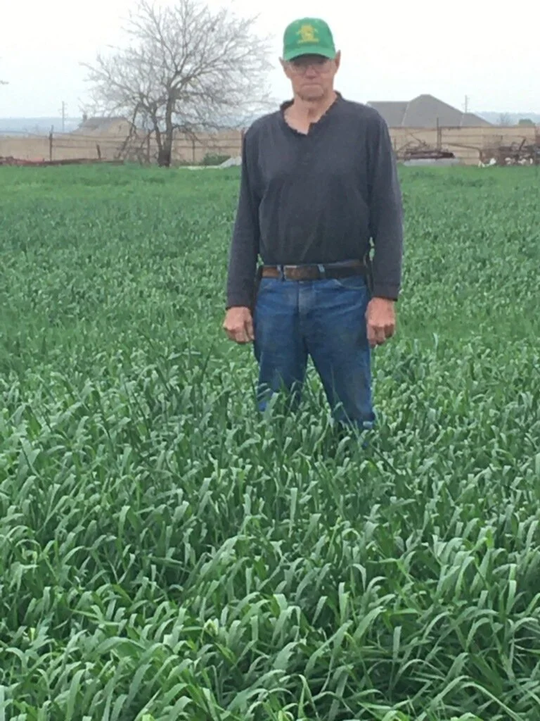 These two photos were taken approximately two weeks apart following an application of SoilCare Formula before he planted rye grass with a no till drill. In the first image, forage height was at knee level. Within two weeks, the second image shows the stand reaching above waist height under the same growing conditions. Supporting active soil biology prior to planting appears to have enhanced early root development and nutrient availability, contributing to rapid, vigorous forage growth.