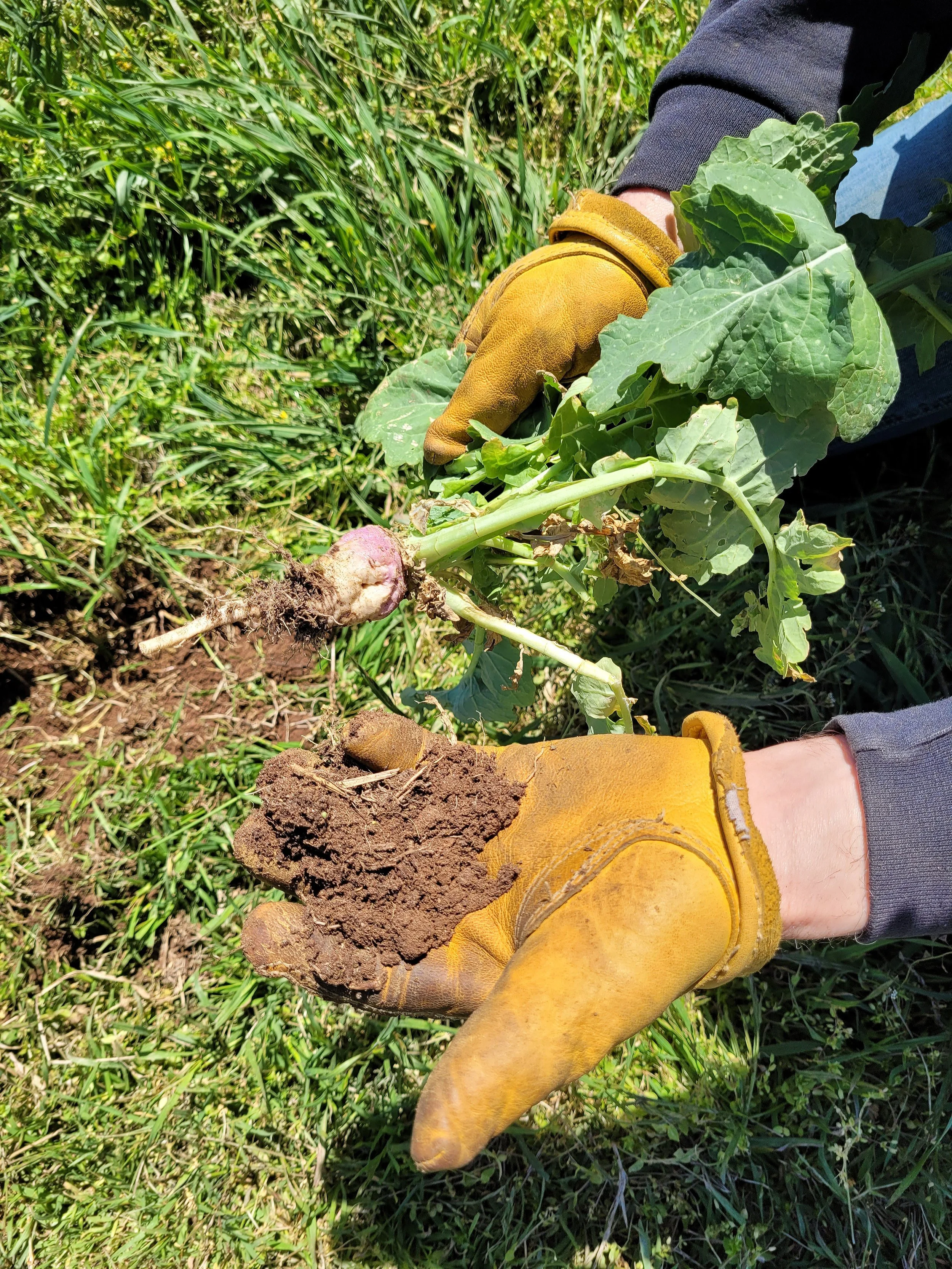 This radish was planted last fall in a cattle pasture as part of a soil aeration and regeneration program. Prior to planting, the SoilCare Formula was applied to the field to support active soil biology and root development. Despite experiencing winter temperatures as low as -20°F along with snow cover, these plants not only survived but continued growing. Now in mid-April, the radishes remain healthy and vigorous. Strengthening soil biology before planting appears to have supported root resilience and plant endurance under extreme weather conditions.