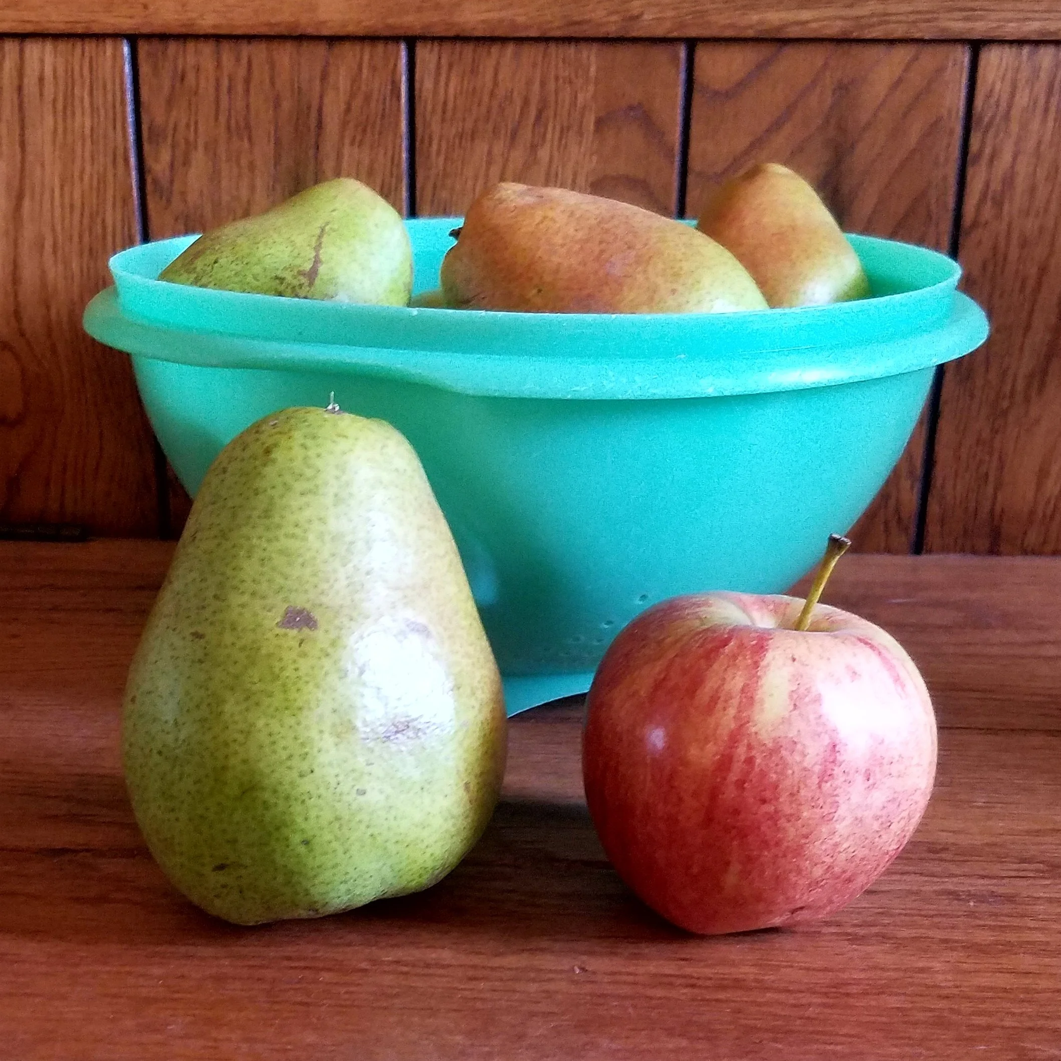BioSoil Formula was applied to the soil around pear and apple trees prior to the growing season to support active soil biology and nutrient availability. The results were noticeably stronger fruit and one of the most abundant harvests the producer has experienced. The large colander shown here reflects the size of the fruit. Strengthening soil biology before the season began made a measurable difference in overall production.